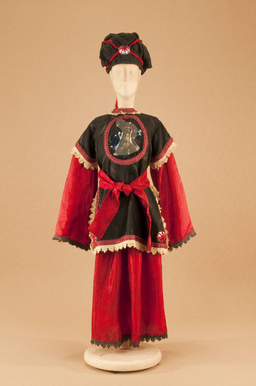 Costume folcloristico orientale composto da gonna, sopravveste, fascia e turbante.