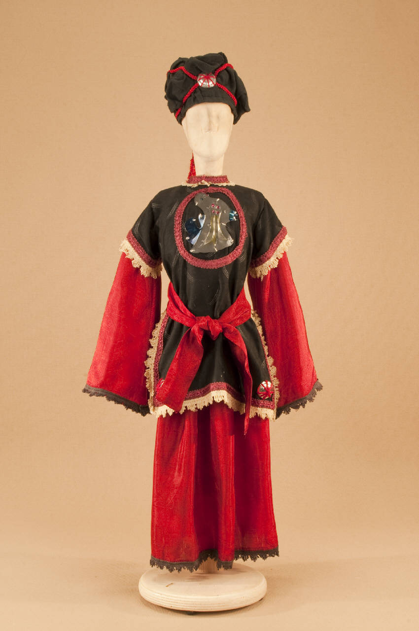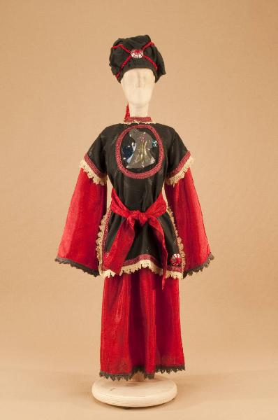 Costume folcloristico orientale composto da gonna, sopravveste, fascia e turbante.