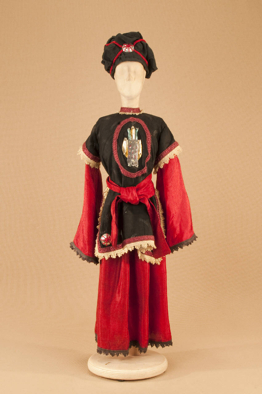 Costume folcloristico orientale composto da gonna, sopravveste, fascia e turbante.