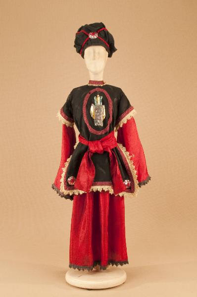 Costume folcloristico orientale composto da gonna, sopravveste, fascia e turbante.