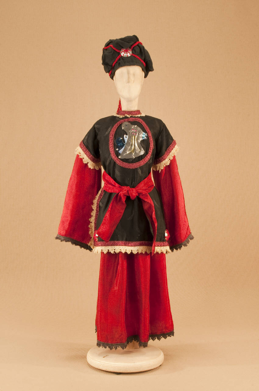 Costume folcloristico orientale composto da gonna, sopravveste, fascia e turbante.