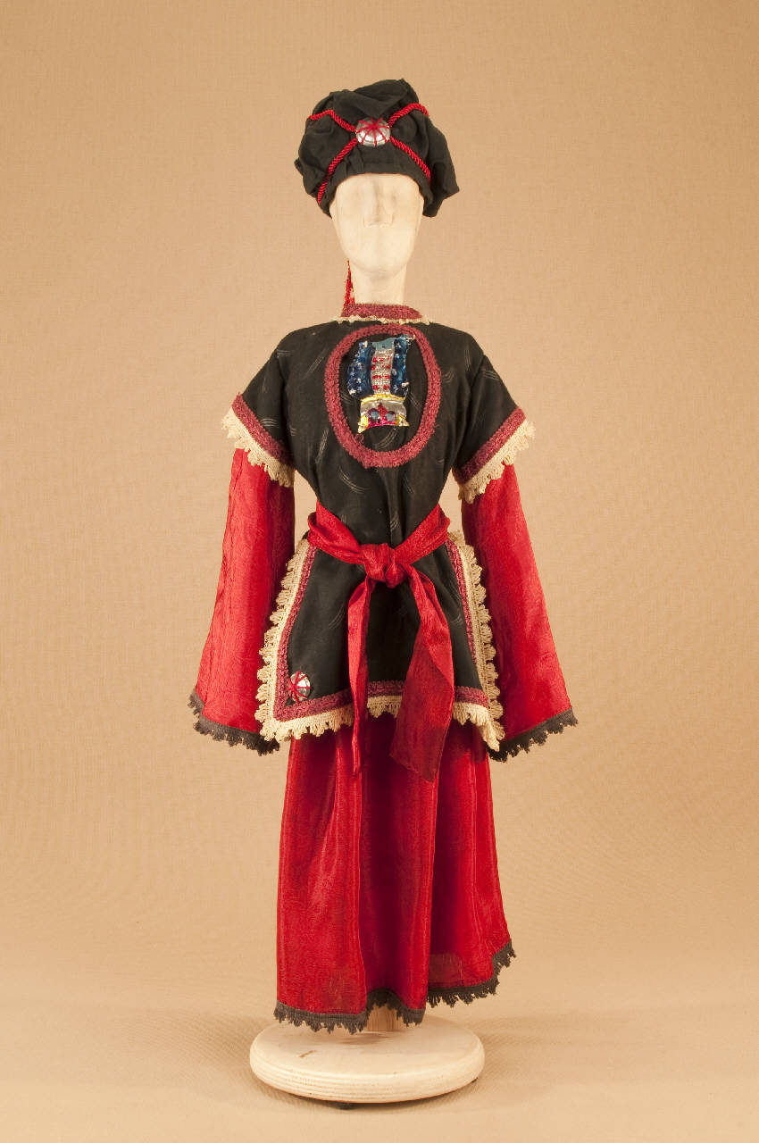 Costume folcloristico orientale composto da gonna, sopravveste, fascia e turbante.