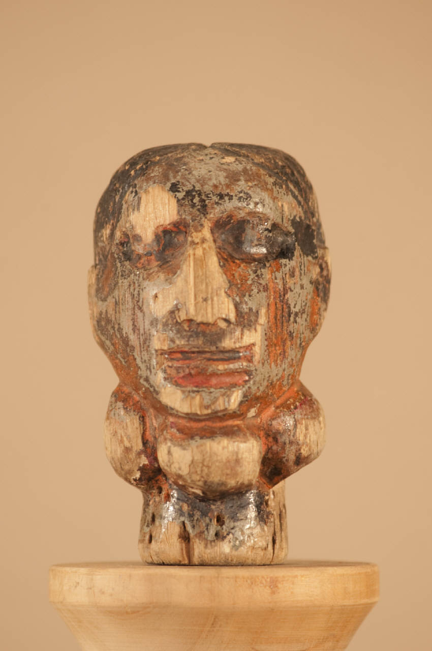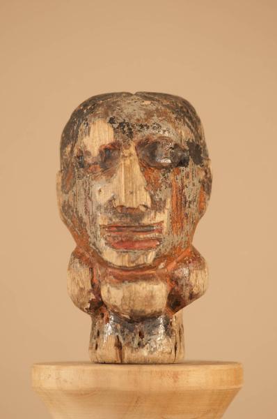 - NOTIZIE STORICO CRITICHE Si tratta probabilmente di una testa di burattino giocattolo vista la ridotta dimensione del foro nel collo. In collezione sono presenti altre teste di burattino aventi le stesse caratteristiche strutturali e stilistiche. Il collo presenta inoltre tracce di chiodi a testimoniare una vecchia attaccatura per il buratto.
