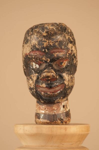 - NOTIZIE STORICO CRITICHE Si tratta probabilmente di una testa di burattino giocattolo vista la ridotta dimensione del foro nel collo. In collezione sono presenti altre teste di burattino aventi le stesse caratteristiche strutturali e stilistiche. Il collo presenta inoltre tracce di chiodi a testimoniare una vecchia attaccatura per il buratto.
