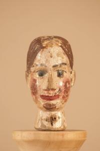 - NOTIZIE STORICO CRITICHE Si tratta probabilmente di una testa di burattino giocattolo vista la ridotta dimensione del foro nel collo. In collezione sono presenti altre teste di burattino aventi le stesse caratteristiche strutturali e stilistiche. Il collo presenta inoltre tracce di chiodi a testimoniare una vecchia attaccatura per il buratto.