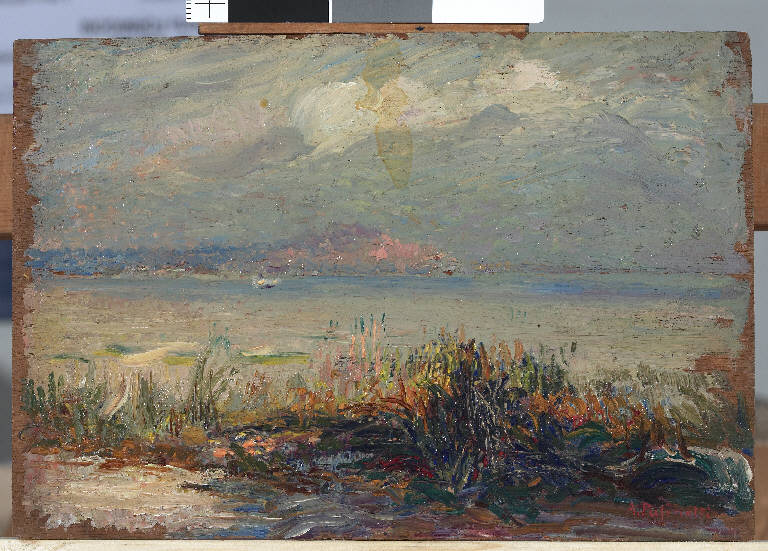 - NOTIZIE STORICO CRITICHE Santa Margherita Ligure è ripresa nei toni chiari e calmi delle prime ore del mattino quando la vivacità del porto e dei bagnanti non anima ancora la nota località turistica. Tra la fine dell'Ottocento e i primi del Novecento il paese genovese diviene meta di villeggiatura per la borghesia e per numerosi pittori lombardi tra cui Leonardo Bazzaro, amico di Antonio Pasinetti.