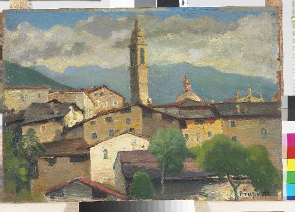 - NOTIZIE STORICO CRITICHE Il punto di vista ravvicinato dell'artista cattura Edolo, in Val Camonica, soffermandosi sulle abitazioni addossate del centro e studiandone il ritmo alternato, esaltato dagli effetti di luce e d'ombra.