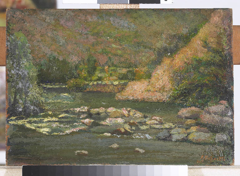 - NOTIZIE STORICO CRITICHE La composizione del bozzetto è affidata alla giustapposizione di macchie di colore che, attraverso ispessimenti, conferiscono volumetria e profondità alla scena.