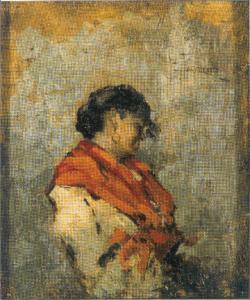 Ritratto di donna raffigurata di profilo, con il capo reclinato sulla spalla sinistra.