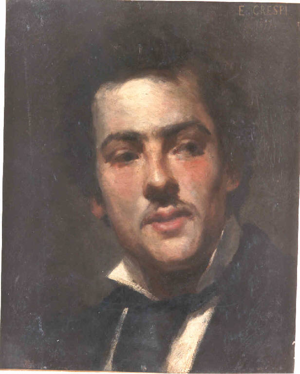 Ritratto del pittore Enrico Crespi, giovane, rappresentato fino alle spalle, di tre quarti.