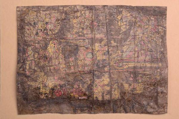 Pergamena in pelle di maiale sulla quale è stato fissato un sottile strato cartaceo sul quale è riprodotta una complessa immagine raffigurante un trionfo di guerra e un grande toponimo. La pergamena, sulla quale è incollata l'immagine ritagliata dal volume "Antigüedades Mexicanas" di Chavero - Mexico 1892 (Pintura precolombiana De La Raza Mixteca) riproduce il foglio 12v del "Códice Colombino", il cui originale è conservato presso il Museo Nazionale di Antropologia del Messico.