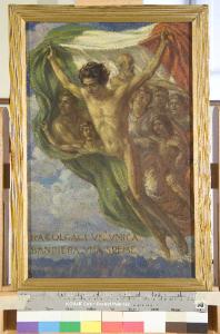 Raccolgaci un'unica bandiera, una speme. Prima Guerra Mondiale 1915-1918; illustrazione allegorica