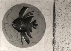 Fossile di un pesce preistorico entro una sfera.
