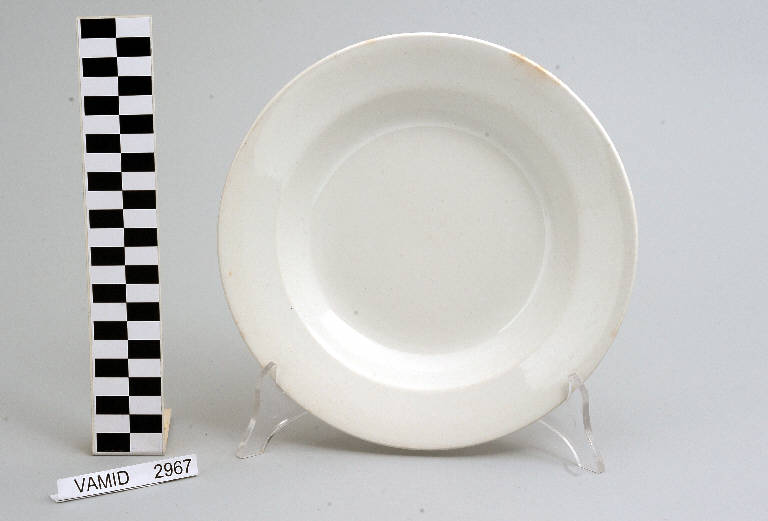 Piatto fondo circolare; fondo bianco avorio con tesa piatta.