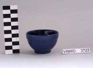 Ciotola a sezione circolare di colore blu uniforme.