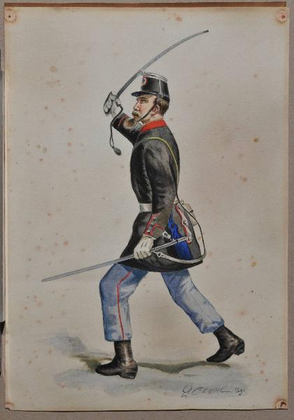 - NOTIZIE STORICO CRITICHE L'acquerello appartiene ad una raccolta di figurini militari nelle uniformi italiane. Le 20 tavole, firmate da Quinto Cenni, sonostate realizzate tra il 1889 ed il 1991.