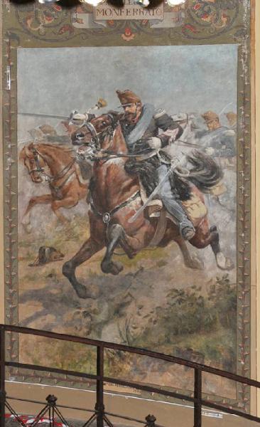 - NOTIZIE STORICO CRITICHE Tra la quarta e la quinta sala, lungo il percorso, lo stesso De Stefani ha realizzato, con la collaborazione del giovane Giuseppe Vizzotto Alberti, una seconda "serie di dieci "Ritratti di uniformi dell'Armata Sarda del 1859" tratti da modelli ad acquerello forniti dall'illustratore imolese Quinto Cenni e tratteggiati con pennellate asciutte, pulite, attente a rendere ogni figura con la necessaria chiarezza descrittiva e cromatica" [Regonelli S., Gli affreschi di San Martino della Battaglia. Il Risorgimento dipinto nel ciclo della Gran Torre, Torino, Allemandi & C. 2011, p. 39].