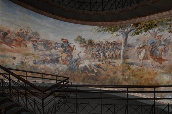 - NOTIZIE STORICO CRITICHE "La penultima tappa del percorso è rappresentata dal dipinto "Il Quadrato di Villafranca", realizzato ancora una volta da Raffaele Pontremoli. Ritrae un notissimo episodio della disastrosa battaglia di Custoza, che ebbe luogo il 24 giugno del 1866, durante la quale si era venuto distinguendo il principe ereditario Umberto I, che aveva coraggiosamente resistito alla carica della cavalleria austriaca formando un quadrato con il IV battaglione del 49° reggimento di Fanteria" [Regonelli S., Gli affreschi di San Martino della Battaglia. Il Risorgimento dipinto nel ciclo della Gran Torre, Torino, Allemandi & C. 2011, p. 40].