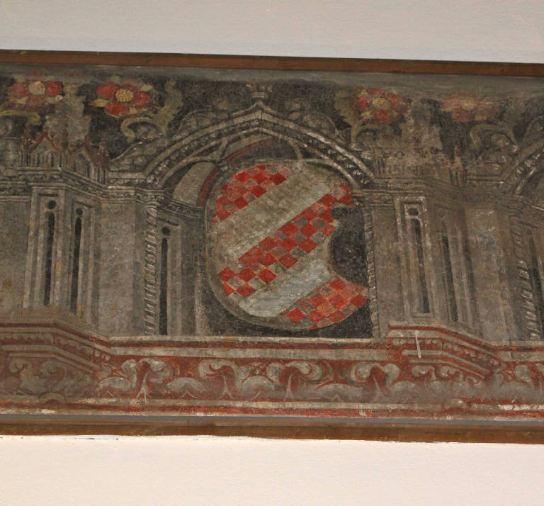 - NOTIZIE STORICO CRITICHE Il fregio pittorico con gli stemmi venne rinvenuto nella Loggia Malatestiana nel 1946 quando, sotto la guida dell'architetto Guido Marangoni, si intrapresero i lavori di restauro per rimediare ai danni dei bombardamenti del secondo conflitto mondiale. Il fregio venne staccato e ricollocato nella sala oggi adibita a sala riunioni della Prefettura.