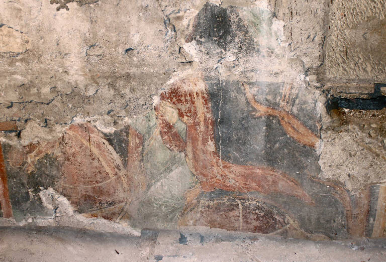 - NOTIZIE STORICO CRITICHE Il primo piano dell'ala meridionale del Broletto, che fu costruita nel secondo quarto del XIII secolo, era occupato da un salone molto grande dove si riuniva il Consiglio di Credenza della Città. Le dimensioni di questo spazio erano imponenti: era lungo quasi 52 metri, largo 14 metri e mezzo ed alto 9 m; era illuminato da grandi finestre polifore, il soffitto era a capriate lignee. Questo vasto ambiente restò in uso fino alla fine del XVI secolo quando fu suddiviso orizzontalmente: nella parte inferiore vennero create delle salette, in quella superiore, posta appena sotto il tetto, fu ricavata una soffitta adibita a vari usi fra cui quello di Archivio Storico Civico. Tra il 1944 e il 1946 i documenti e i materiali dell'Archivio Storico Civico vennero spostati e sulle pareti settentrionale e meridionale del sottotetto fu scoperta una decorazione ad affresco piuttosto vasta che, in epoca medievale, ornava le pareti del Salone del Consiglio della Città di Brescia. Nel 1946 i dipinti sono stati discialbati, ripuliti e consolidati dal restauratore Bertelli che mette in luce due strati sovrapposti di affreschi. Il primo, pertinente alla seconda metà del XIII secolo, raffigura una teoria di cavalieri incatenati che escono dalle porte della città facendo riferimento ai diversi provvedimenti presi dal Comune bresciano per allontanare i nobili di parte ghibellina della città nell'ultimo quarto del XIII secolo. Il secondo strato della decorazione pittorica, invece, è databile a qualche decennio più tardi e comprende la raffigurazione della cosiddetta "Pace di Bagnolo Mella" che, nel 1298, pose fine alle lotte civili fra guelfi e ghibellini stabilendo su Brescia la signoria del Vescovo Berardo Maggi e vari dipinti di soggetto sacro che, nel 1946, vennero strappati dalle pareti per mettere in luce la sfilata dei cavalieri ed oggi sono conservati nella Pinacoteca Civica.