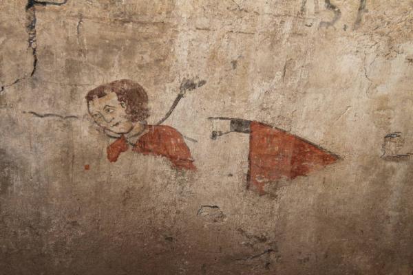 - NOTIZIE STORICO CRITICHE Il primo piano dell'ala meridionale del Broletto, che fu costruita nel secondo quarto del XIII secolo, era occupato da un salone molto grande dove si riuniva il Consiglio di Credenza della Città. Le dimensioni di questo spazio erano imponenti: era lungo quasi 52 metri, largo 14 metri e mezzo ed alto 9 m; era illuminato da grandi finestre polifore, il soffitto era a capriate lignee. Questo vasto ambiente restò in uso fino alla fine del XVI secolo quando fu suddiviso orizzontalmente: nella parte inferiore vennero create delle salette, in quella superiore, posta appena sotto il tetto, fu ricavata una soffitta adibita a vari usi fra cui quello di Archivio Storico Civico. Tra il 1944 e il 1946 i documenti e i materiali dell'Archivio Storico Civico vennero spostati e sulle pareti settentrionale e meridionale del sottotetto fu scoperta una decorazione ad affresco piuttosto vasta che, in epoca medievale, ornava le pareti del Salone del Consiglio della Città di Brescia. Nel 1946 i dipinti sono stati discialbati, ripuliti e consolidati dal restauratore Bertelli che mette in luce due strati sovrapposti di affreschi. Il primo, pertinente alla seconda metà del XIII secolo, raffigura una teoria di cavalieri incatenati che escono dalle porte della città facendo riferimento ai diversi provvedimenti presi dal Comune bresciano per allontanare i nobili di parte ghibellina della città nell'ultimo quarto del XIII secolo. Il secondo strato della decorazione pittorica, invece, è databile a qualche decennio più tardi e comprende la raffigurazione della cosiddetta "Pace di Bagnolo Mella" che, nel 1298, pose fine alle lotte civili fra guelfi e ghibellini stabilendo su Brescia la signoria del Vescovo Berardo Maggi e vari dipinti di soggetto sacro che, nel 1946, vennero strappati dalle pareti per mettere in luce la sfilata dei cavalieri ed oggi sono conservati nella Pinacoteca Civica.