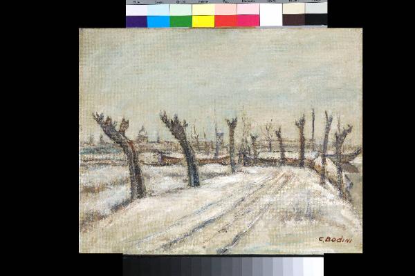 - NOTIZIE STORICO CRITICHE L'artista si forma a Mantova, all'inizio del '900, frequentando in via Corridoni la Regia Scuola Serale e Domenicale d'Arte Applicata all'Industria diretta da Giuseppe Marusi. Qui Bodini fa propria la metodologia del disegno rigoroso ed "è bravissimo specialmente nei suoi disegni lontani nel tempo, quelli del lago a Cittadella, prima della guerra. (...) Il sentimento dell'artista in questi disegni è espresso da un segno tratteggiato con amore, in cui l'aderenza all'ambiente diventa emozione, fatto psicologico (...) rapporto tra l'uomo e la sua natura. Quegli anni son, certamente, un momento felice per la pittura di paesaggio a Mantova e i disegni del lago attorno a Cittadella tracciati da Bodini, prima delle distruzioni belliche, sono tra i risultati più interessanti per una lettura dell'ambiente, dell'assunzione di una reale dimensione culturale." [Luigi Fraccalini in "Artisti a Mantova nei secoli XIX e XX. Dizionario biografico", a cura di Sartori A. e Sartori A., Mantova 1999, p. 468]
