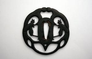 - NOTIZIE STORICO CRITICHE Tsuba di tipo Shoami (scuola).\n\nIn Giappone l'elsa è detta "tsuba". La sua funzione primaria è quella di fare in modo che la mano di chi impugna la spada non finisca sulla propria lama, oltre a bilanciare la spada e a proteggere la mano dalla lama dell'avversario.\nIndirettamente, gli tsuba servivano anche a mostrare lo stato sociale e il gusto personale e, come per altri oggetti d'uso, divennero presto un mezzo d'espressione artistica.\nDal XIX secolo, quando la spada e i suoi accessori divennero più decorativi che funzionali, e ancor più dal 1878, a seguito della proibizione di portare la spada, gli tsuba erano prodotti come oggetti da collezione favoriti dagli occidentali, che li vedevano come una originale e nuova forma d'arte. Molti di questi oggetti raggiunsero infatti l'Europa già nell'Ottocento.\n\nI fori laterali, hitsuana servivano a lasciare passare i manici dei piccoli oggetti decorativi e d'uso che sporgevano dal fodero.