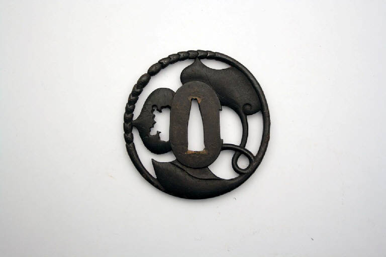 - NOTIZIE STORICO CRITICHE In Giappone l'elsa è detta "tsuba". La sua funzione primaria è quella di fare in modo che la mano di chi impugna la spada non finisca sulla propria lama, oltre a bilanciare la spada e a proteggere la mano dalla lama dell'avversario.\nIndirettamente, gli tsuba servivano anche a mostrare lo stato sociale e il gusto personale e, come per altri oggetti d'uso, divennero presto un mezzo d'espressione artistica.\nDal XIX secolo, quando la spada e i suoi accessori divennero più decorativi che funzionali, e ancor più dal 1878, a seguito della proibizione di portare la spada, gli tsuba erano prodotti come oggetti da collezione favoriti dagli occidentali, che li vedevano come una originale e nuova forma d'arte. Molti di questi oggetti raggiunsero infatti l'Europa già nell'Ottocento.