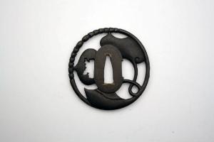 Elsa di spada giapponese, a forma tonda, con i tre fori canonici, quello centrale (nakagoana) per il codolo, il foro di sinistra (kozuka hitsuana) per il coltellino, e quello di destra (kogai hitsuana) per lo spillone. Sono rappresentate tre foglie di aoi. Il kogai è stato realizzato peculiarmente a forma di foglia magiata dagli insetti. La decorazione complessiva è realizzata a traforo (sukashi) e una parte del bordo è sagomata con un motivo fitomorfo simile a due file opposte di campanelle.