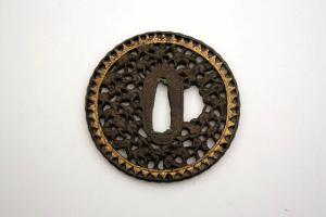 Elsa di spada giapponese di forma tonda. Sono presenti il foro centrale per il codolo (nakagoana) e il foro di sinistra (kozuka hitsuana). La decorazione è realizzata con la tecnica sukashi, a traforo, raffigurante il motivo chiamato da alcuni autori "delle mille schimmie".