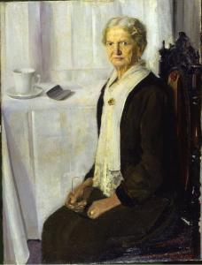 - NOTIZIE STORICO CRITICHE Il dipinto fa parte delle tredici opere di Pietro Gaudenzi giunte al Museo Nazionale della Scienza e della Tecnica nel 1957 con il lascito di Guido Rossi, che possedeva un cospicuo nucleo di dipinti del pittore, non tutti pervenuti al museo. L'industriale ebbe un ruolo privilegiato con Gaudenzi: secondo il racconto di Ettore Cozzani, infatti, fu lui a invitarlo a trasferirsi a Milano, divenendone per anni mecenate e committente (Cozzani 1923, p. 34).\nLa tela ritrae la madre dell'industriale milanese, evidentemente committente dell'opera, e sembra ripetere la formula del fortunato ritratto della signora Albanese, suocera di Rossi, del 1924 (inv. 1767), nel richiamo alla tradizione ottocentesca, nella posa della figura seduta e voltata verso sinistra, nel contrasto tra l'abito scuro e il fondo dominato dai toni bianchi. Tuttavia il dipinto, terminato nel 1927, come indica l'iscrizione, evidenzia l'evoluzione subita dalla pittura di Gaudenzi in pochi anni: rispetto a quello, infatti, è meno naturalistico nella resa della luce, più freddo nei colori, più rigido e fermo sia nei contorni che nella materia pittorica, alla ricerca di un rigore che indica l'influenza novecentista, mentre la natura morta in secondo piano mostra echi della metafisica.