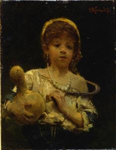 - NOTIZIE STORICO CRITICHE Il quadro è giunto al Museo Nazionale della Scienza e della Tecnica nel 1957 con il lascito della collezione di Guido Rossi, che di Michetti possedeva sette dipinti (nn. inv. 1830-1835, 1837) e che lo acquistò prima del 1928 (Somarè 1928, v. II, tav. XV). \nDatato 1872, il dipinto è un'opera giovanile, che come altre mostra l'influenza di Filippo Palizzi, ma in cui già sembra affiorare una maggior coscienza sociale e quell'attenzione per i dati di costume che caratterizzerà l'attività matura, mentre la pennellata tende a farsi più mossa e vibrante.\nAlla prima metà degli anni settanta appartiene un gruppo diversificato di piccoli dipinti che con questo condividono l'impostazione, il taglio e la tecnica veloce e brillante, quasi delle variazioni sul tema, come Contadinella, del 1872 (Napoli, Museo S. Martino) o Bimba dal fazzoletto rosso, datata al 1870-1880 (Napoli, collezione Scarfoglio; cfr Sillani 1932, tav. XVI).