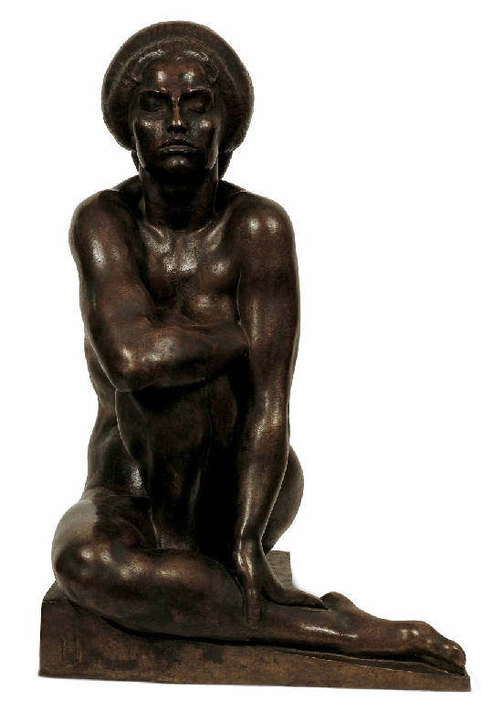 Statua in bronzo di Attilio Selva di dimensioni metà del naturale, raffigurante un nudo femminile seduto, con gli occhi chiusi.