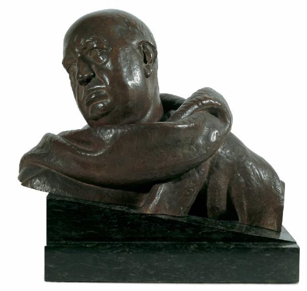 Busto in bronzo di dimensioni metà del naturale di Arrigo Minerbi, raffigurante l'apostolo Simone con le spalle avvolte nel mantello, su base in marmo verde.