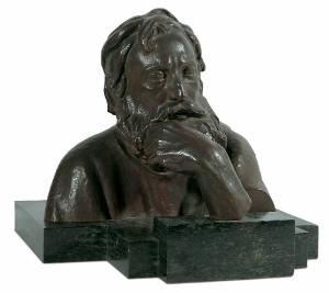 Busto in bronzo di dimensioni metà del naturale di Arrigo Minerbi, raffigurante l'apostolo Andrea con le spalle avvolte nel mantello e la mano portata al mento, su base in marmo verde.