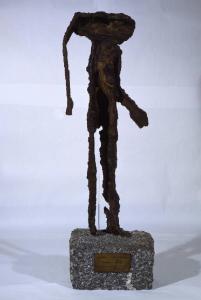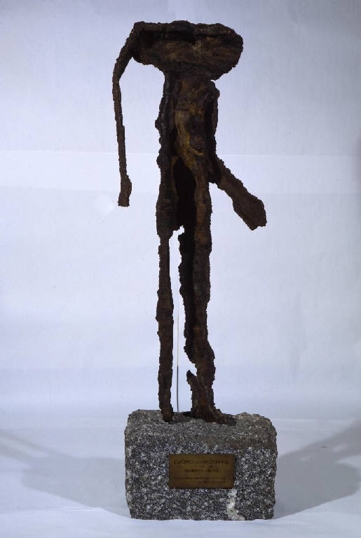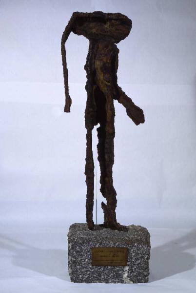 Scultura in bronzo di Roberto Crippa di forma antropomorfa, su base di granito.