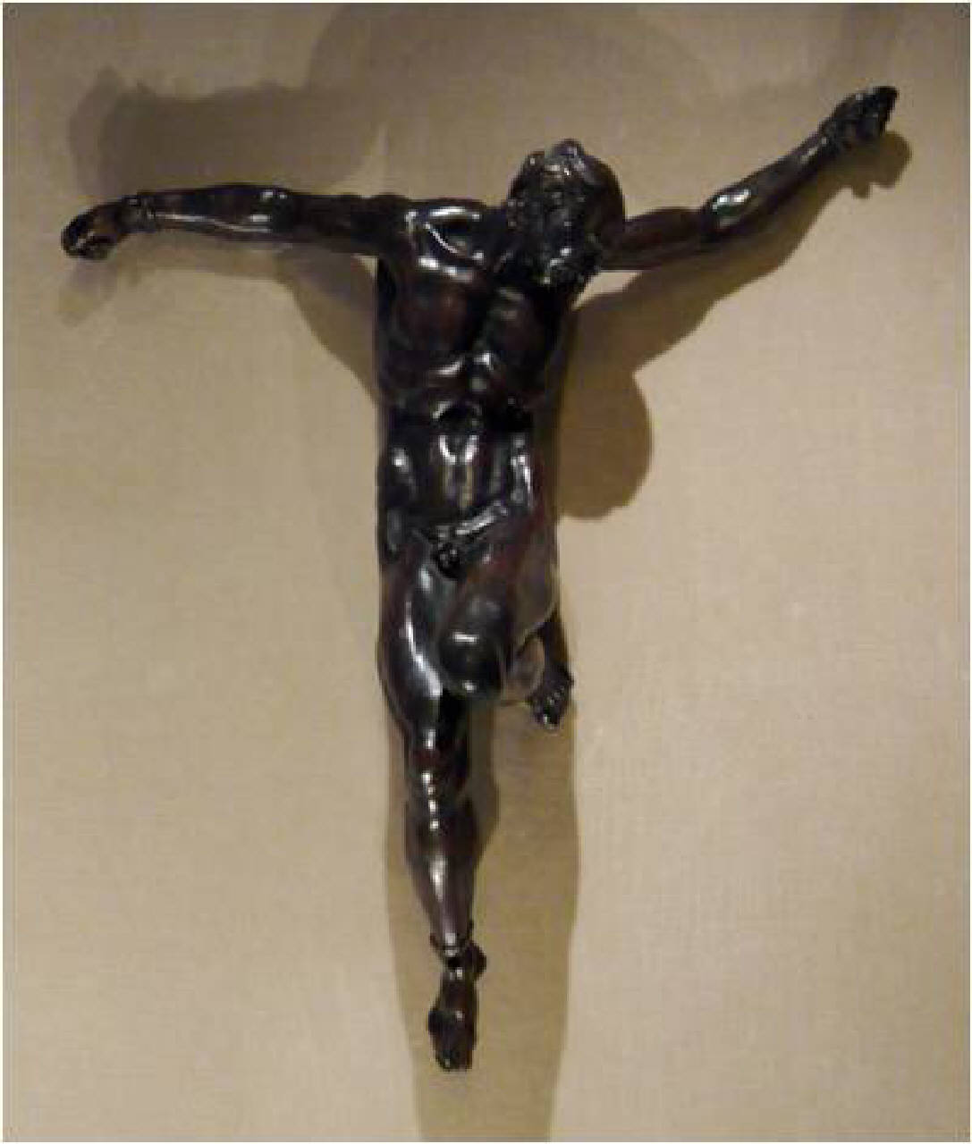Cattivo Ladrone, rappresentato in una posa di contorsione: il braccio sinistro tende verso l'alto; la gamba sinistra è piegata a fare da puntello per il corpo. Opera realizzata su bozzetto di cera di mano michelangiolesca.
