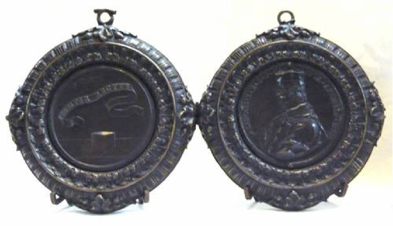 Medaglia raffigurante il Cardinale alfonso Litta (1609-1679), arcivescovo di Milano, montata in una cornice di metallo munita di cerniera.