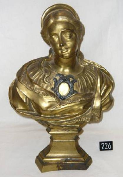 Busto di santa in bronzo dorato con reliquiario nel petto (reliquia di Santa Giustina)con base triangolare.