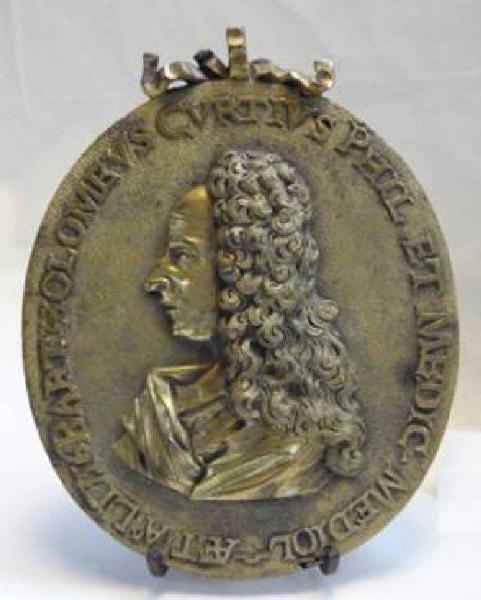 medaglione ovale con ritratto del medico Bartolomeo C urtius; scritta sul bordo esterno.