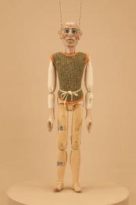 Testa in legno di tiglio fissata al corpo tramite ferro, occhi di vetro. Corpo normale in tiglio grezzo. Gambe unite al bacino tramite bordione in ferro, ginocchia ad incastro mobile. Mani in tiglio con dita scolpite ma unite. Bilancino a croce metodo Holden.