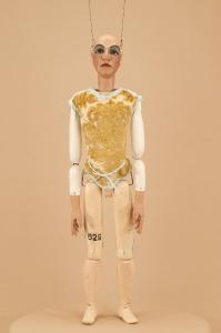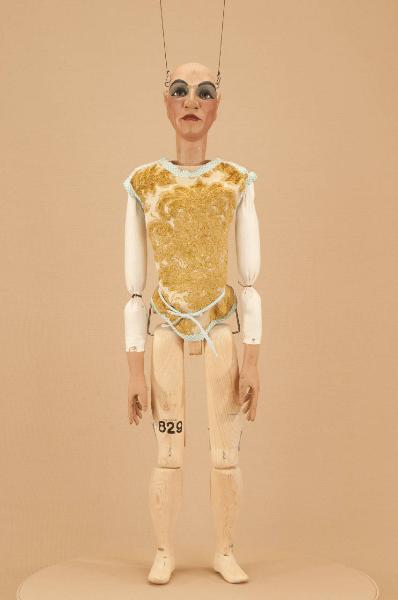 Testa di legno di tiglio fissata al corpo tramite ferro, occhi di vetro. Corpo grande in abete. Gambe unite al bacino tramite bordione in ferro, ginocchia ad incastro mobile. Mani in tiglio con dita scolpite e separate. Bilancino a croce metodo Holden.