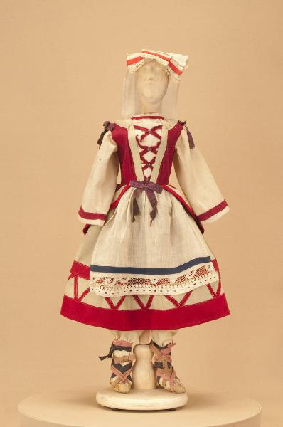 Costume folcloristico da donna italiana composto da veste, ciocie e copricapo.