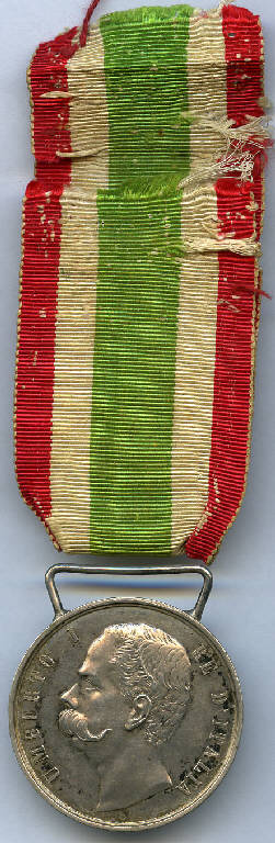 Medaglia a ricordo dell'Unità d'Italia (Medagliere di Giuseppe Tironi). Umberto I; corona vegetale