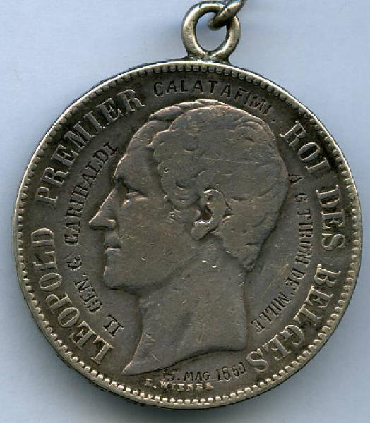 Scudo da 5 franchi belga (Medagliere di Giuseppe Tironi). Leopoldo I re del belgio; emblema di stato del Regno del Belgio