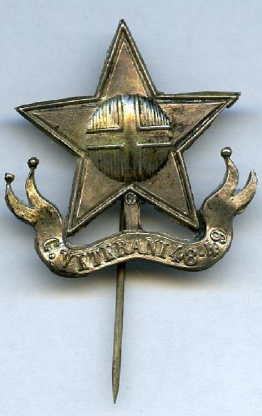 Distintivo dei veterani del 1848-1849 (Medagliere di Giuseppe Tironi). Stella a cinque punte; croce sabauda