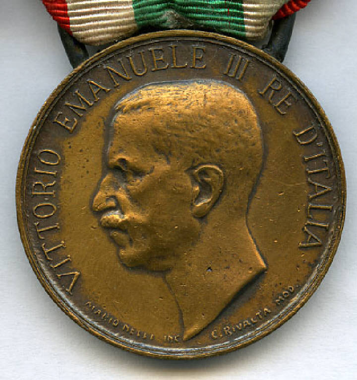 medaglia; nastro con riga verde al centro e con ai lati righe bianche e rosse