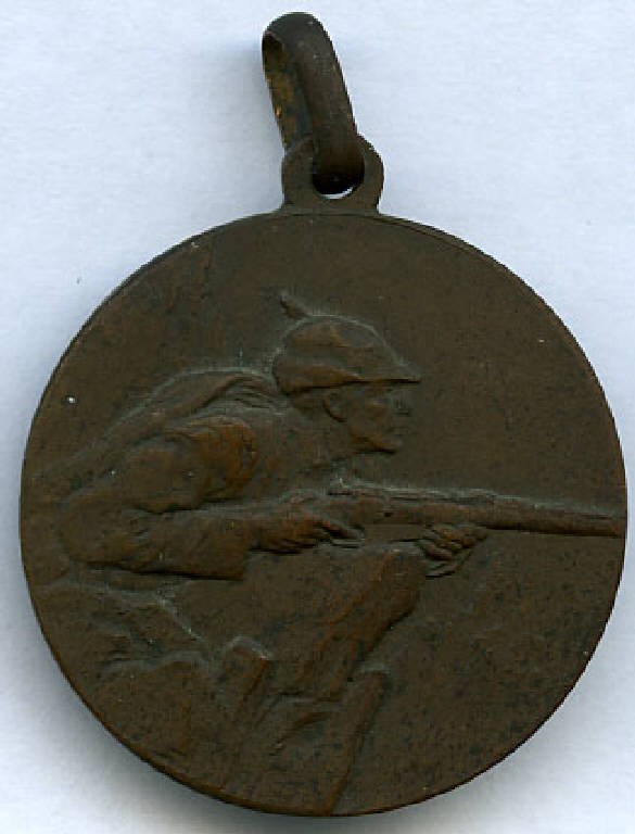 Medaglia reggimentale del 5° reggimento Alpini (Medagliere di Carlo Locatelli). Alpino in assetto da combattimento in alta quota