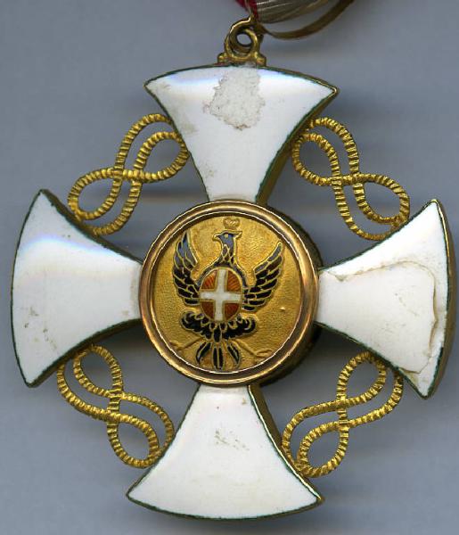 Croce da commendatore dell'Ordine della Corona d'Italia. Corona Ferrea; aquila sabauda