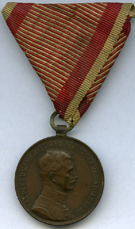 Medaglia al Valor Militare austriaca. Carlo I d'Austria; corona d'alloro con iscrizione